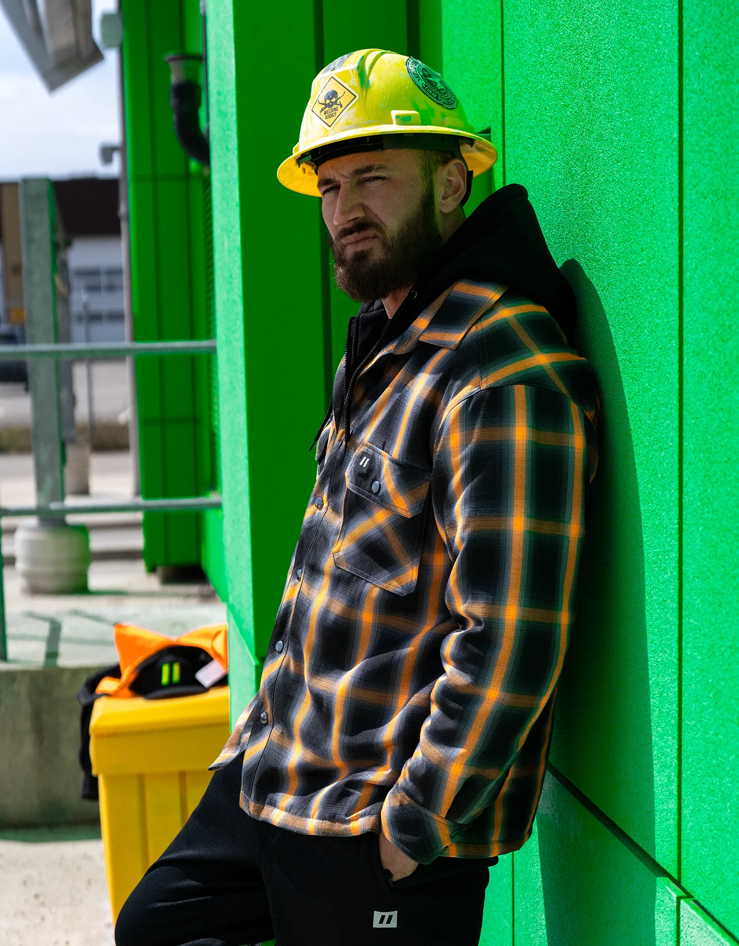 Orange Ombre Plaid Hooded Quilt-lined Shirt Jacket